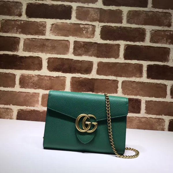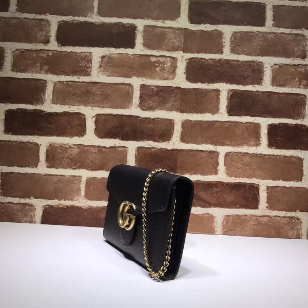 The GG Marmont mini chain bag has a removable chain shoulder strap and extensive interior space.
