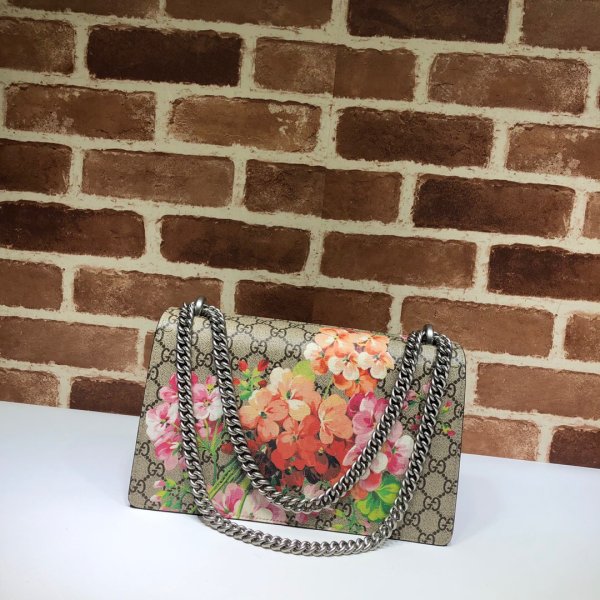 Blooms print GG Supreme canvas, a material with low environmental impact, with antique rose suede detail